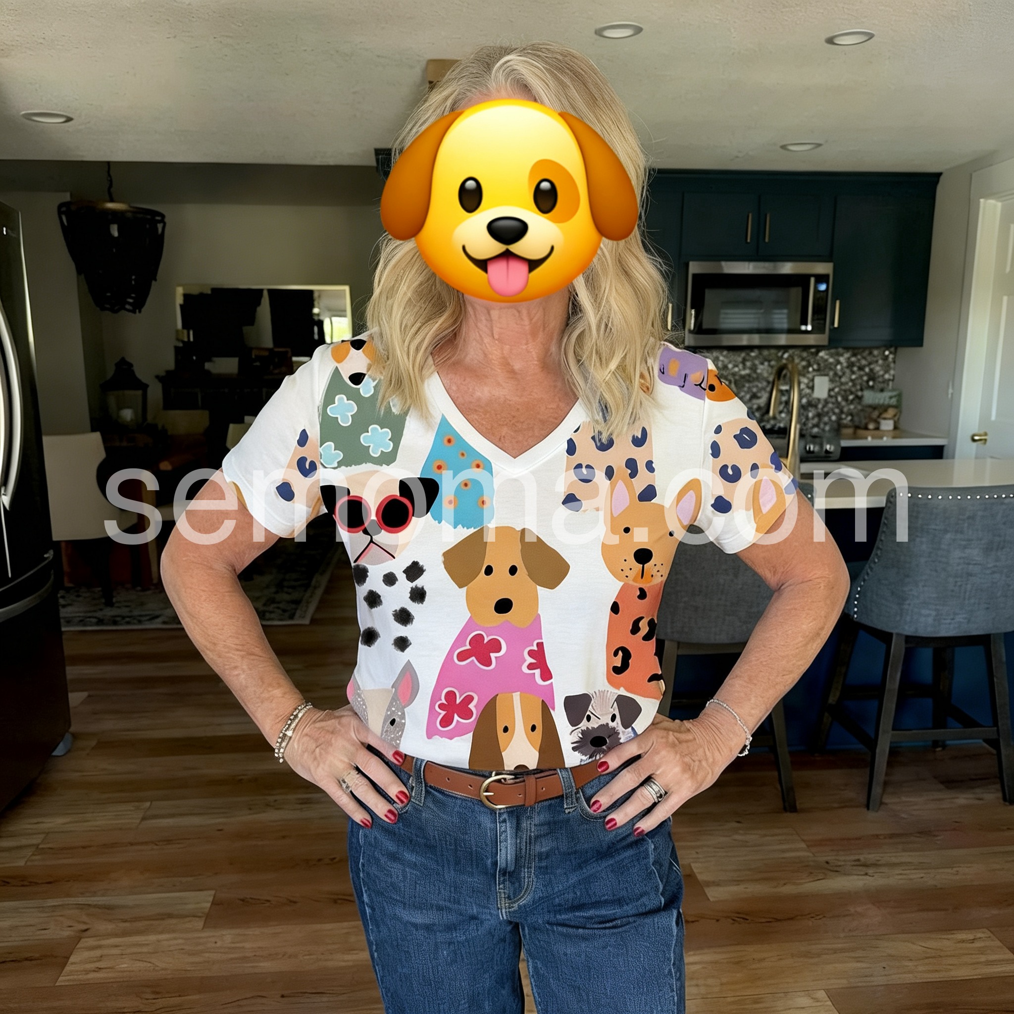 Style# 1544301Brighten your day with this Whimsical Dog Print Short Sleeve Top, a cheerful and eye-catching piece that turns heads with its playful, hand-drawn style canine illustrations. Featuring an adorable array of cartoon dogs in vibrant outfits—complete with sunglasses, floral dresses, and bold patterns—this top brings a joyful, artistic flair to any outfit. Crafted from lightweight, breathable fabric—likely cotton or linen blend—it’s perfect for warm weather and casual wear. The relaxed fit, short sleeves, and soft V-neckline offer ultimate comfort and effortless style, making it ideal for beach days, brunches, or weekend outings. Whether you're a dog lover or simply adore fun fashion, this top is a must-have statement piece that blends humor, creativity, and charm. Pair it with white jeans, denim shorts, or flowy pants for a look that's both flirty and full of personality. Inspired by the whimsical spirit of brands like Lulus, this top celebrates individuality and lighthearted fashion—perfect for those who love to express their fun side with every step.