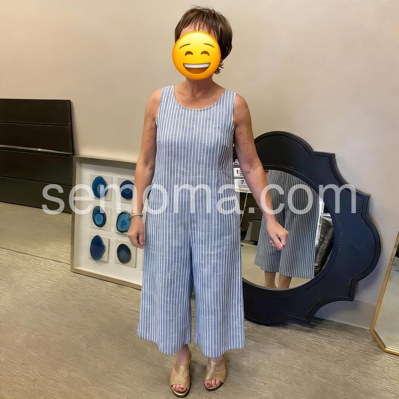 Elevate your style with our Blue Striped Sleeveless Jumpsuit. Made from high-quality materials, it features a chic blue striped design that will make you stand out from the crowd. The sleeveless design offers a comfortable fit, making it perfect for all-day wear. Upgrade your wardrobe with this trendy and versatile jumpsuit.
