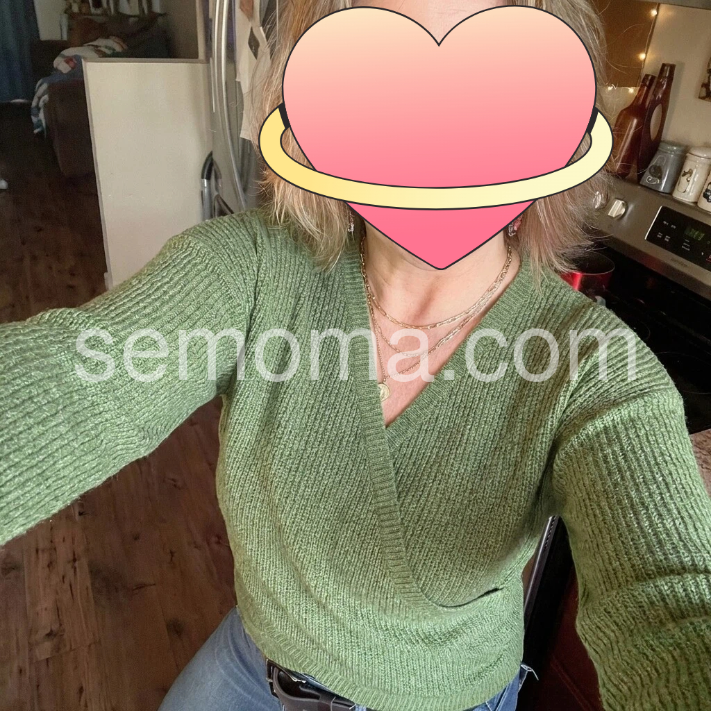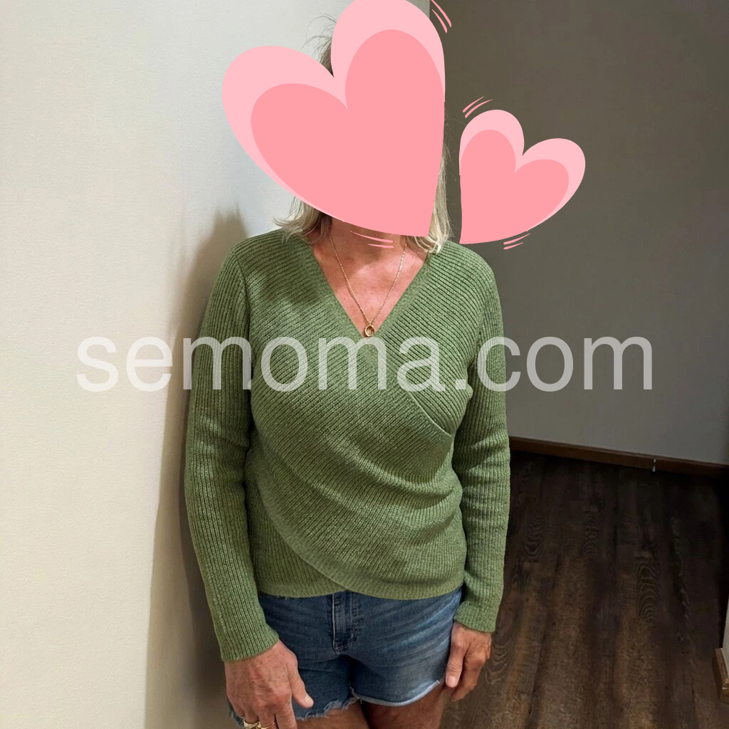 I absolutely love this sweater! The color is such a beautiful, easy-to-wear olive green. The V-neck crossover design is very flattering and makes the whole look more polished. The knit feels soft and not itchy, and it’s comfortable while still being warm. The fit looks great and matches the photos well. Overall, the quality feels really nice.