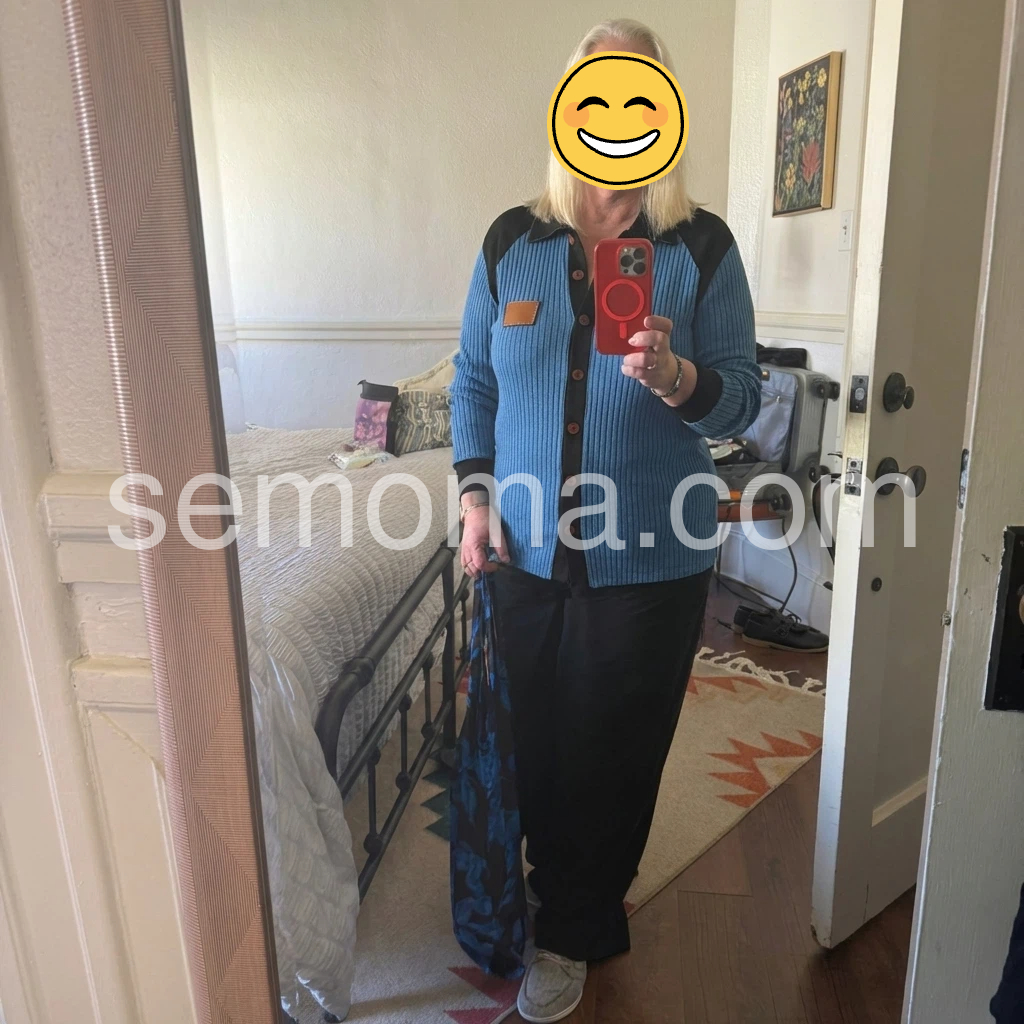 I was looking for something light but warm, and this blue button-knit piece delivered exactly that. The moment I tried it on, the fabric felt comfortable and breathable, and the fit was flattering without being tight. I wore it on a quick coffee run and noticed how the buttons added a nice structure to the whole look.