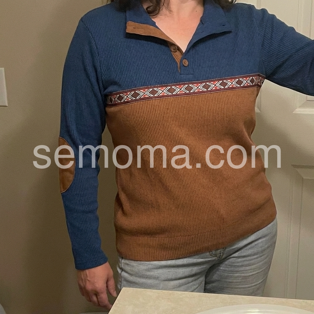 Elevate your casual wardrobe with this sophisticated brown long sleeve top, featuring contrasting color block panels that add visual interest and dimension. The signature elbow patches deliver timeless preppy appeal while reinforcing high-wear areas for enhanced durability. Crafted for versatility, this piece transitions seamlessly from weekend errands to relaxed office settings. The structured long sleeves provide coverage and warmth, making it an ideal layering piece for transitional seasons. A refined choice for those who appreciate understated style with functional design details.