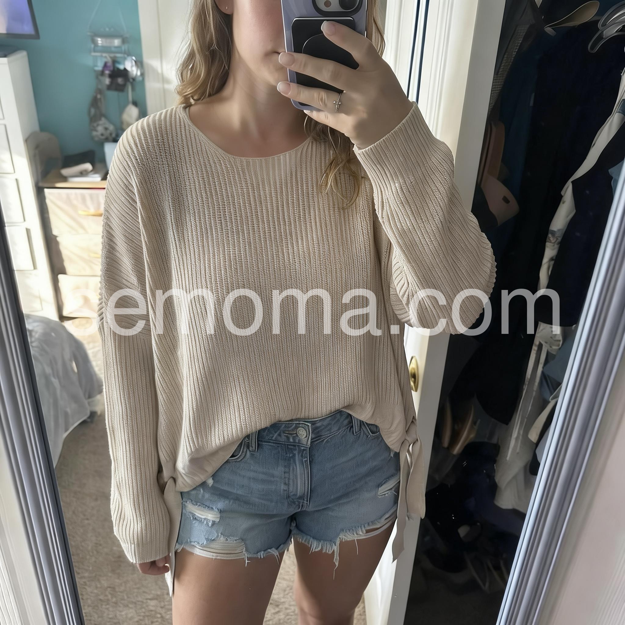 Stay warm and look stylish with this apricot plain round neck sweater. Knitted from high-quality material, it's lightweight, breathable, and soft to the touch. Its plain, classic look makes it a perfect addition to any wardrobe.