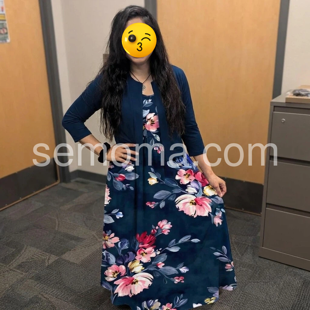 Blue Print Midi Dress With Jacket