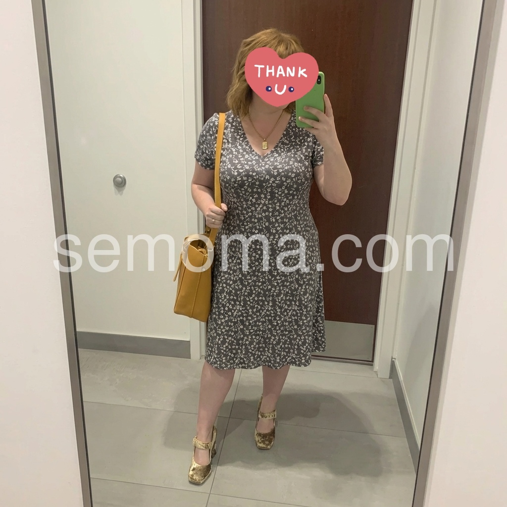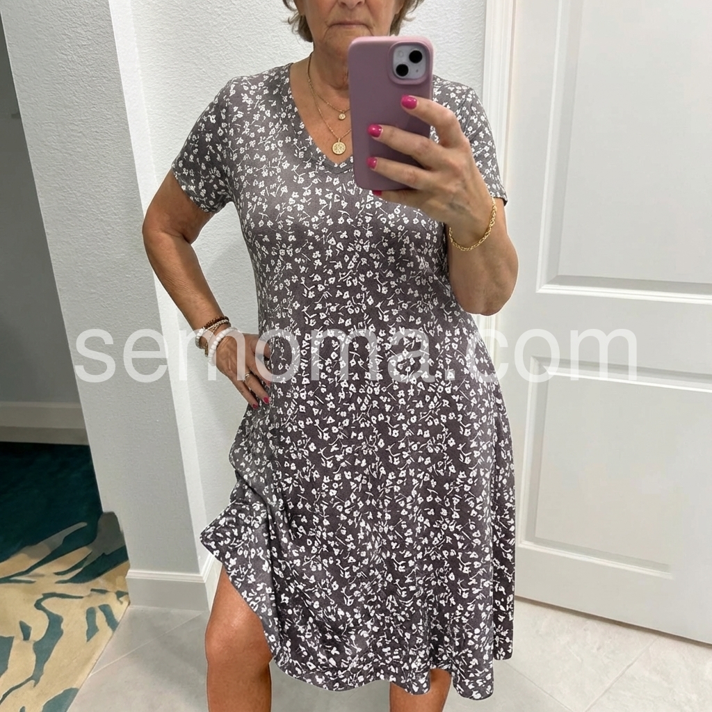 The V-neck and short sleeves keep it light and breezy, while the fitted waist and flowy skirt hug my curves just right. I love how it swishes when I walk!