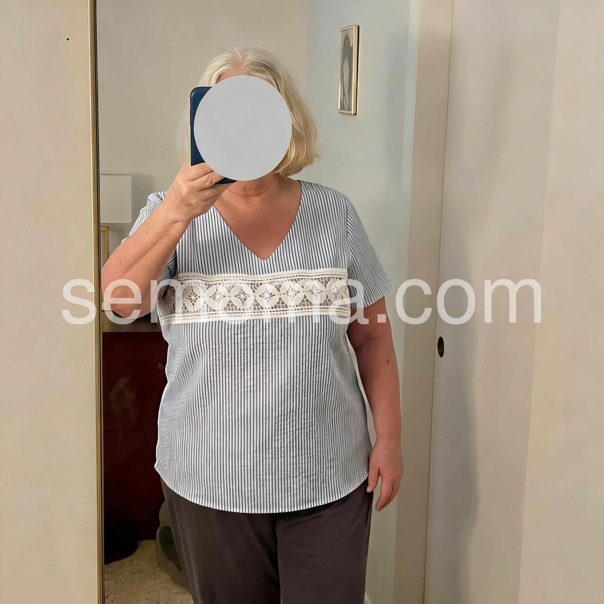 This gives me perfect coastal grandmother vibes! The stripes and lace combo is so chic. I paired it with a chunky turquoise necklace and it looked amazing. True to size.