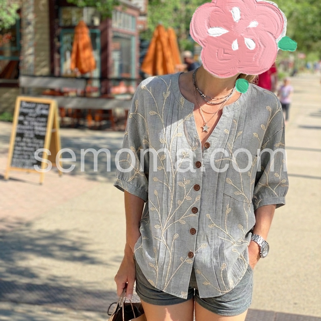 I designed this blouse to bring subtle elegance to everyday wardrobes. The delicate leaf embroidery adds a refined touch without being flashy, making it perfect for both work and casual wear.