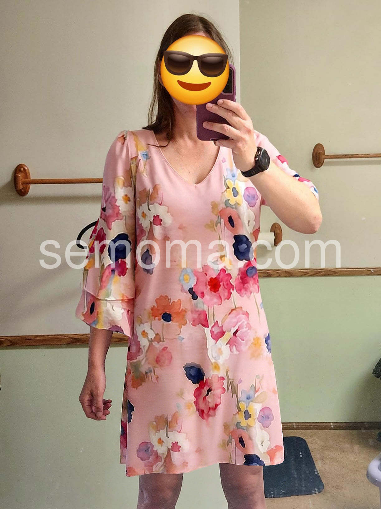 Absolutely love this dress! The watercolor floral pattern is so beautiful in person. The fit is incredibly flattering and forgiving without looking like a tent. Perfect for my upcoming spring vacation.