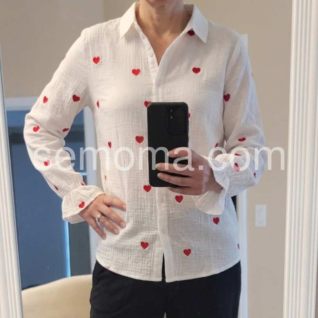 I love these shirts! They are very long in length & the sleeves are too. They are also super soft with a little stretch & wash up great. No wrinkles!