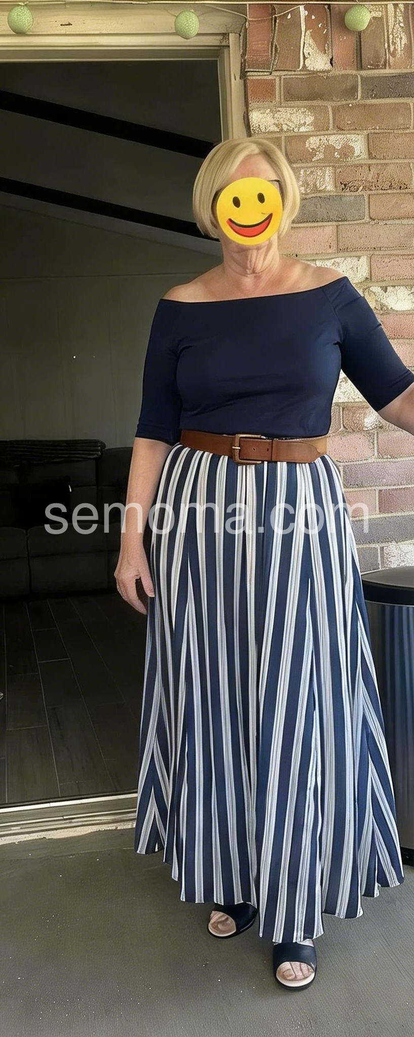 The off-shoulder top shows just the right amount of skin, while the flowy striped pants make you look like a fashion icon (without the effort).