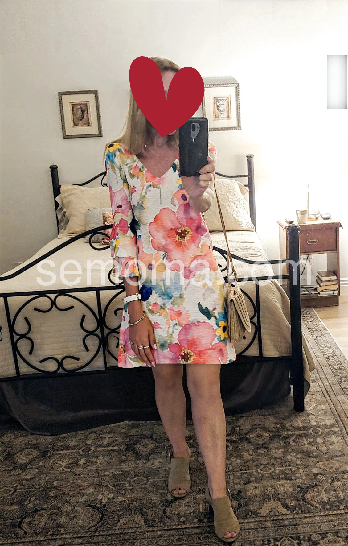 This floral dress features a soft watercolor print with vibrant pink, red, and blue blooms on a light background. The V-neckline and flared sleeves add a romantic touch. Loose, relaxed fit ensures comfort and ease. Perfect for spring outings, brunches, or beach days. Lightweight fabric flows beautifully for a breezy, effortless look.