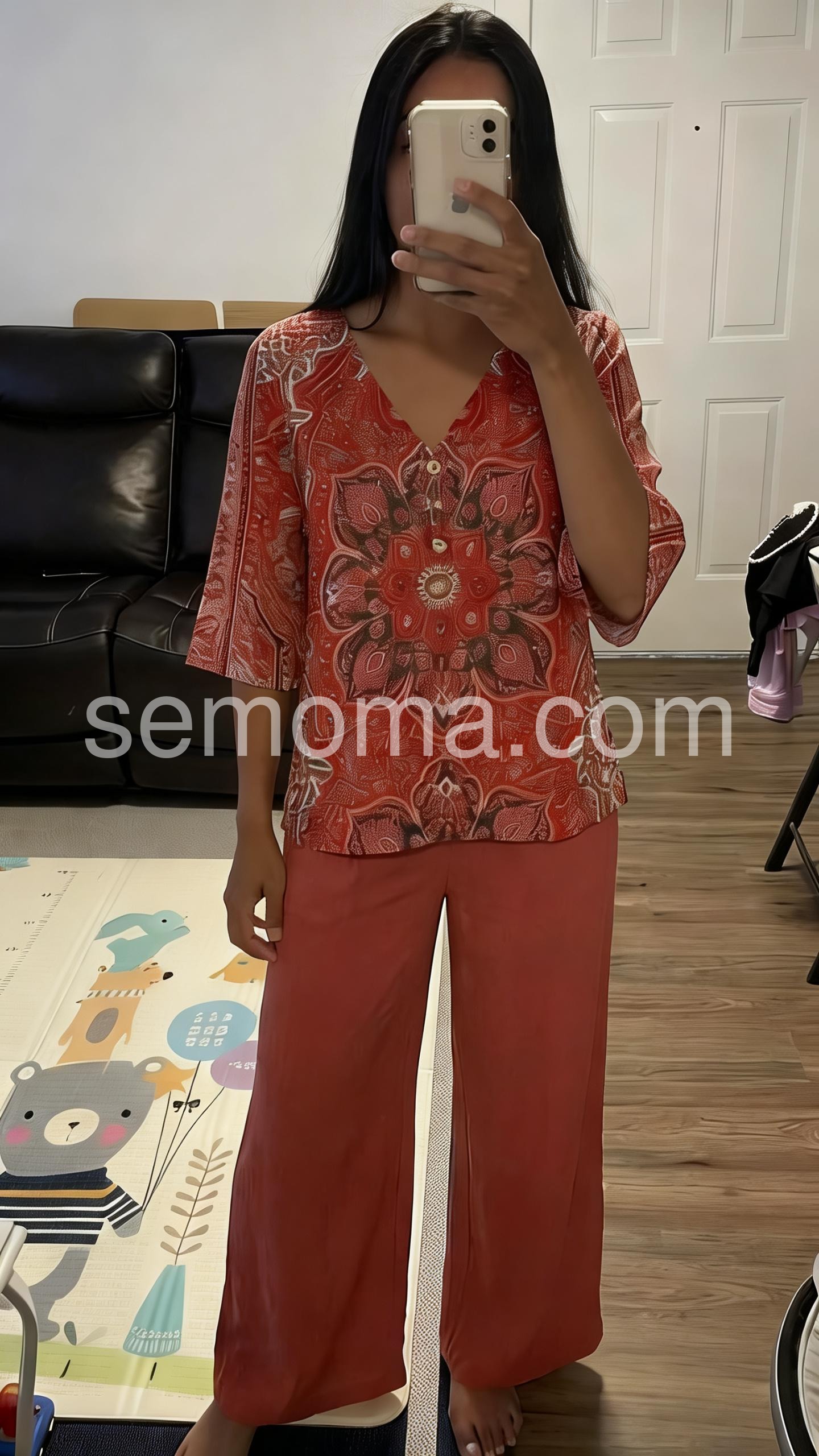 Such a versatile set! The boho print top looks amazing with the matching pants, but I also wear it with my favorite jeans. The pants are lovely with a simple white tank top. Great value for getting two quality pieces.