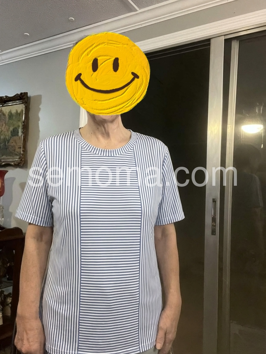 Blue White Stripe Round Neck Short Sleeve T-Shirt