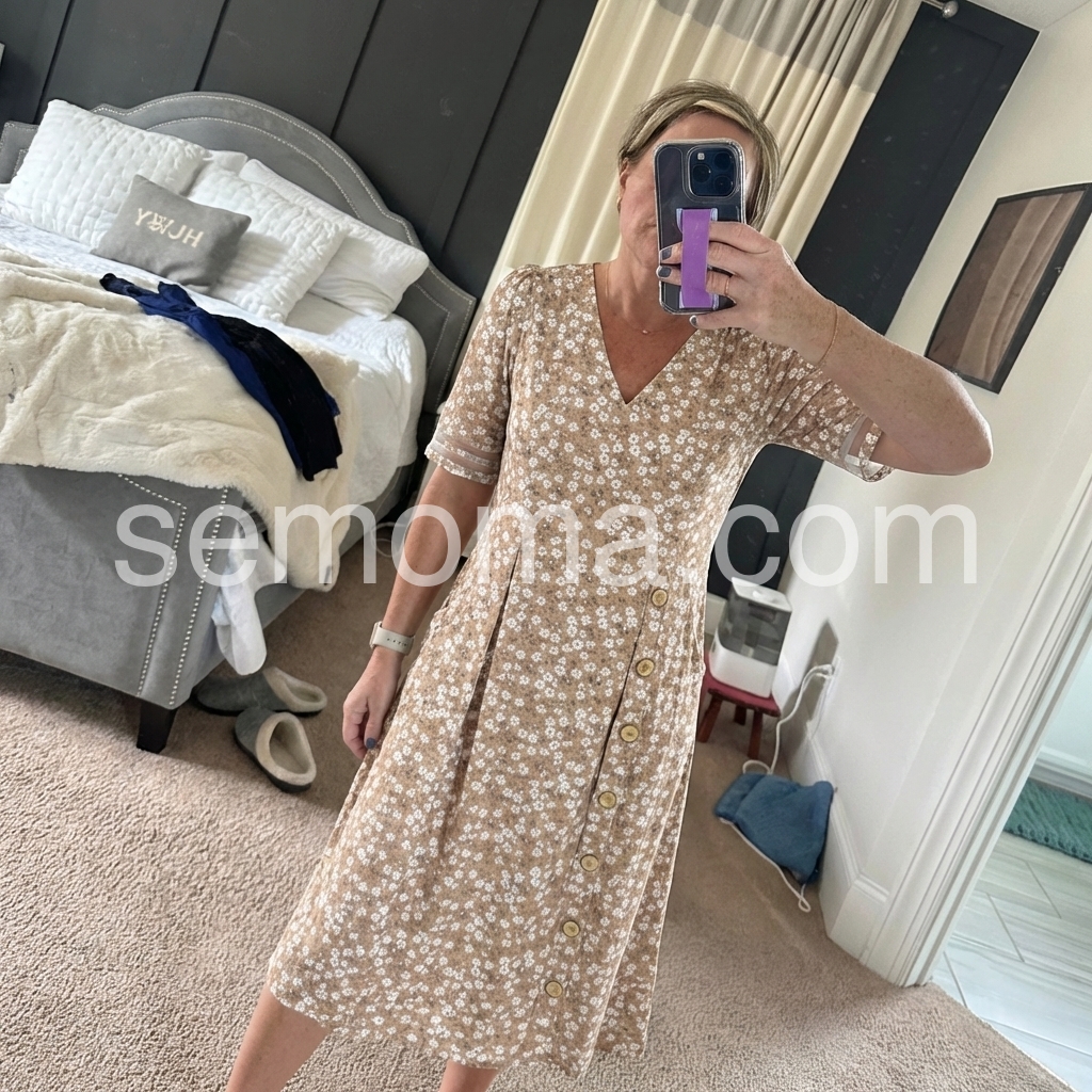 The V-neck and button-up front give it a really cute, laid-back vibe, and the short sleeves make it ideal for warm weather. The floral pattern is vibrant without being over the top, and it pairs great with sandals for a casual day out or can be dressed up with accessories for dinner. She’s worn it to brunch, beach walks, and even a summer wedding—it’s that versatile.Comfortable, breathable, and super flattering.