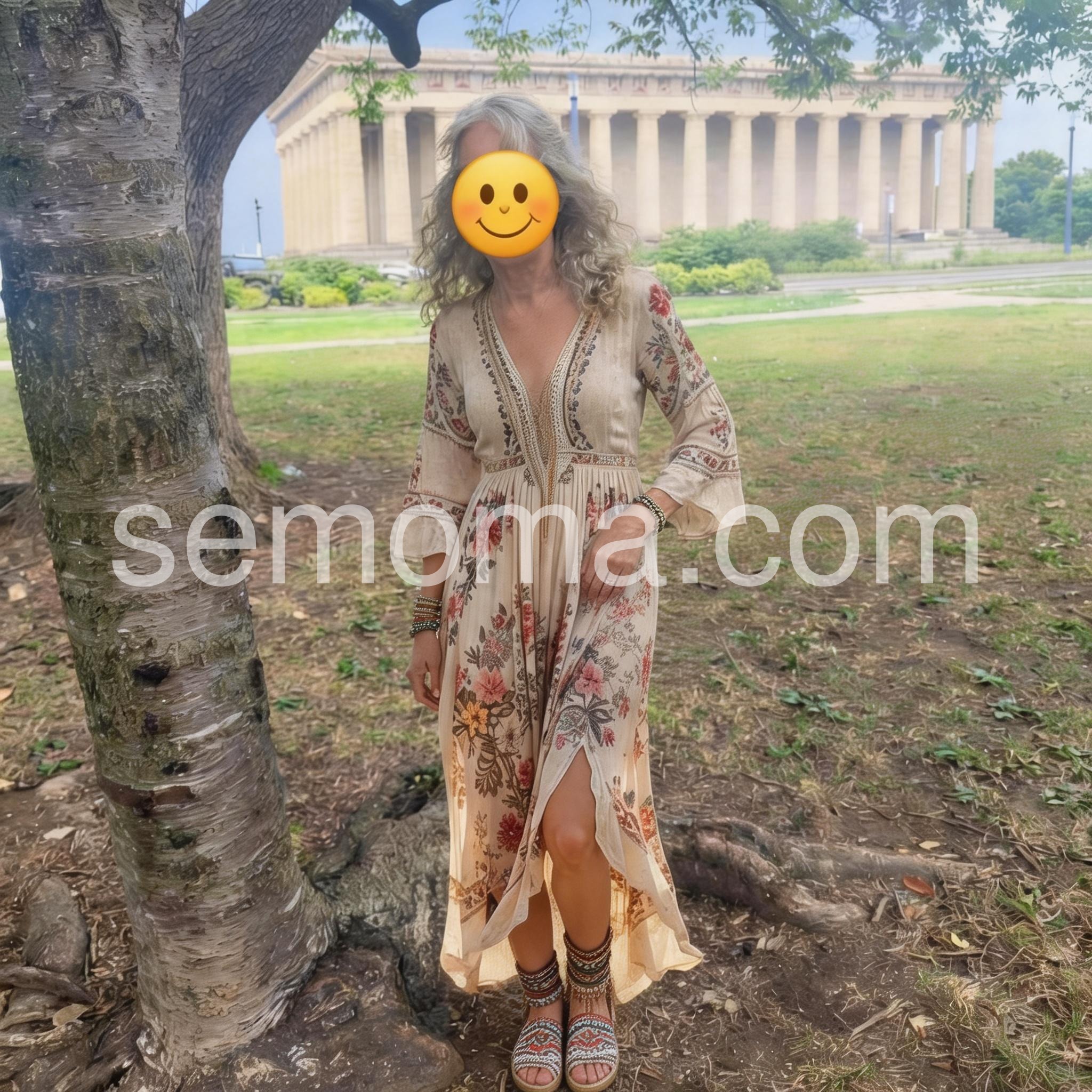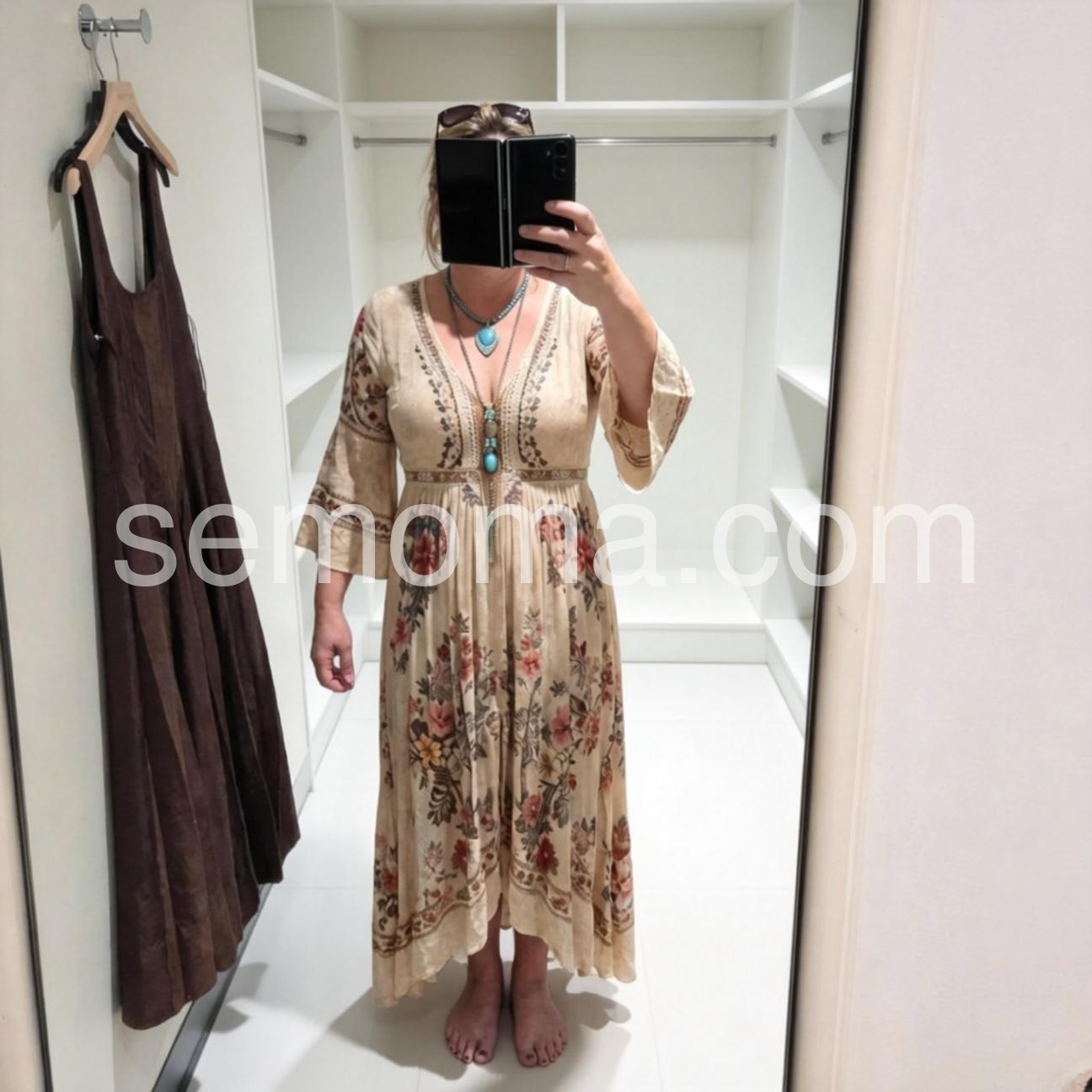 Absolutely in love with this boho dress! The floral print is delicate and vibrant, and the lightweight fabric drapes beautifully. I will pair it with brown boots and a wide-brim hat for an effortless desert chic look.
