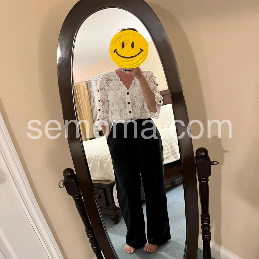 I created this lace blouse to solve the “boring basics” problem in every wardrobe. The intricate daisy lace overlay adds texture and romance, elevating simple jeans or trousers to something special.