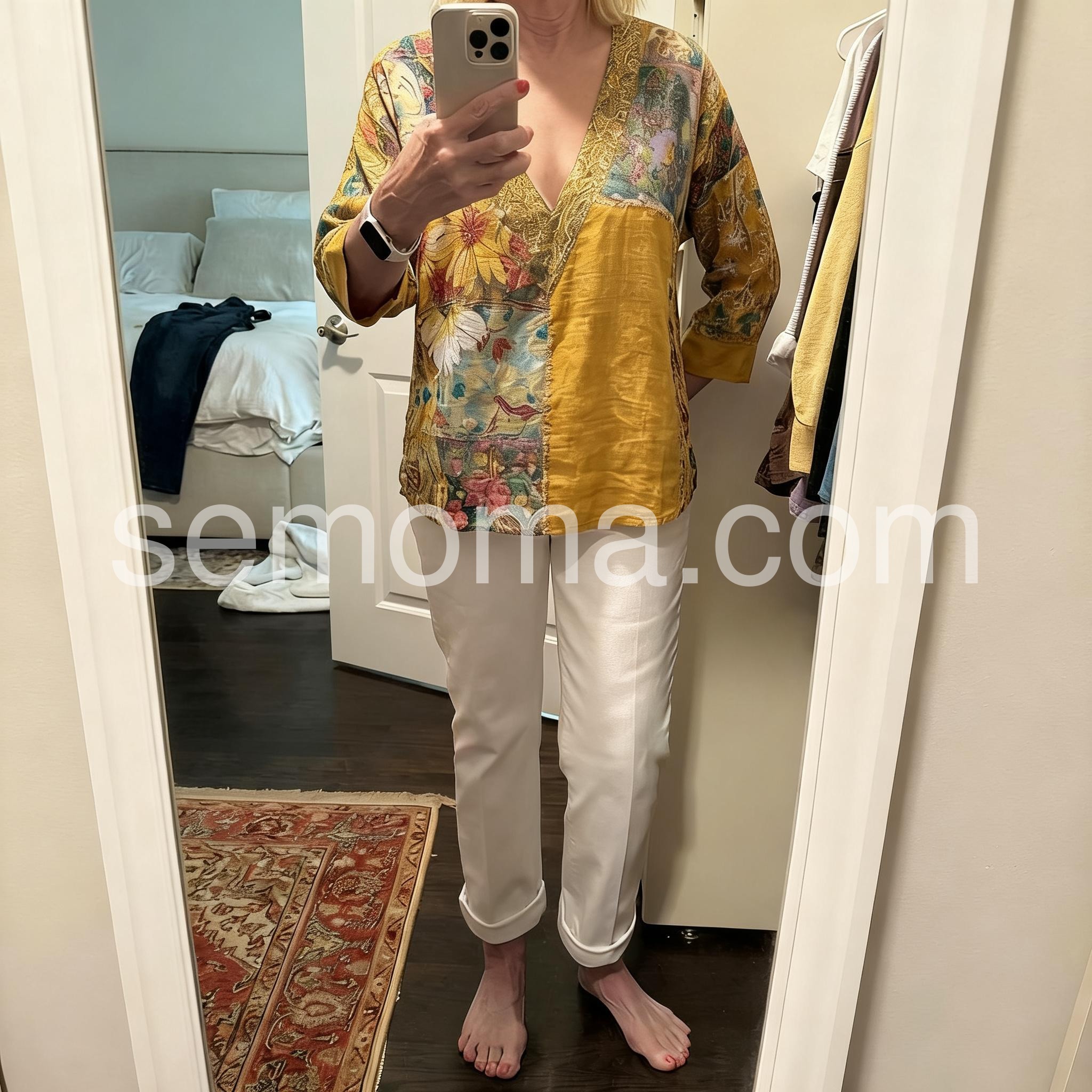 Absolutely love this top! The bohemian patchwork design is so unique and the mustard yellow color pops beautifully. It fits true to size and looks amazing paired with my favorite jeans and a chunky belt just like the picture. Highly recommend for anyone looking for an artsy vibe.