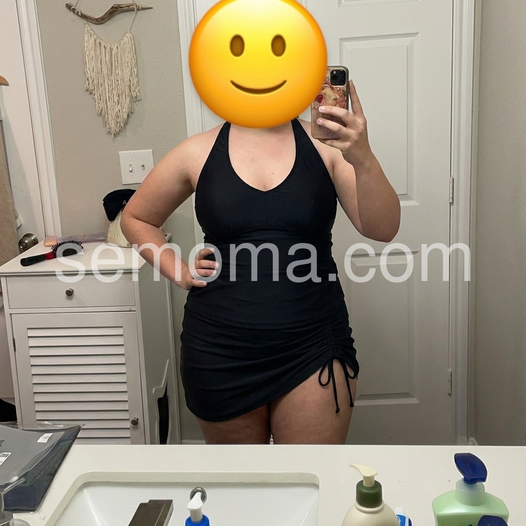 True to size, I’m between a large and X-Large. Ordered the X-Large and it fits so well. Good coverage, while still cute. Perfect for a family trip.