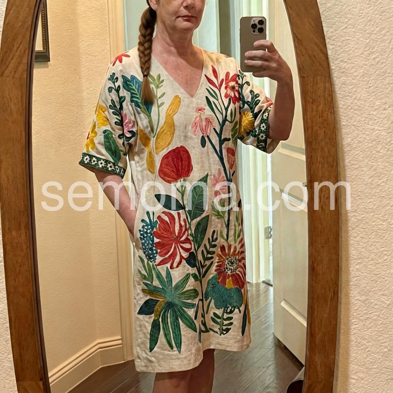 Classy V-Neck Floral Print Mini Dress