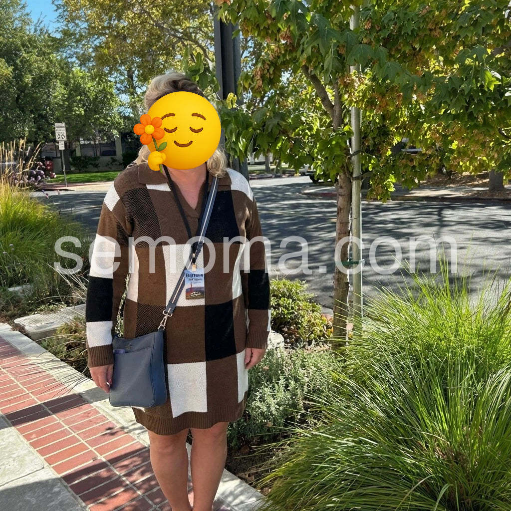 Introducing our Brown V-Neck Long Sleeve Mini Dress. Made from high-quality materials, it's designed to provide both style and comfort. Perfect for any occasion, this dress features a flattering v-neckline and long sleeves for a chic and elegant look. Upgrade your wardrobe with this versatile piece!