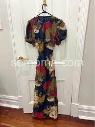 Absolutely stunning dress! I wore this to a spring wedding and received so many compliments. The floral print is bold and beautiful against the dark background, and the puff sleeves add such a romantic touch. The subtle side cutouts give it a modern edge without being too revealing. Highly recommend!