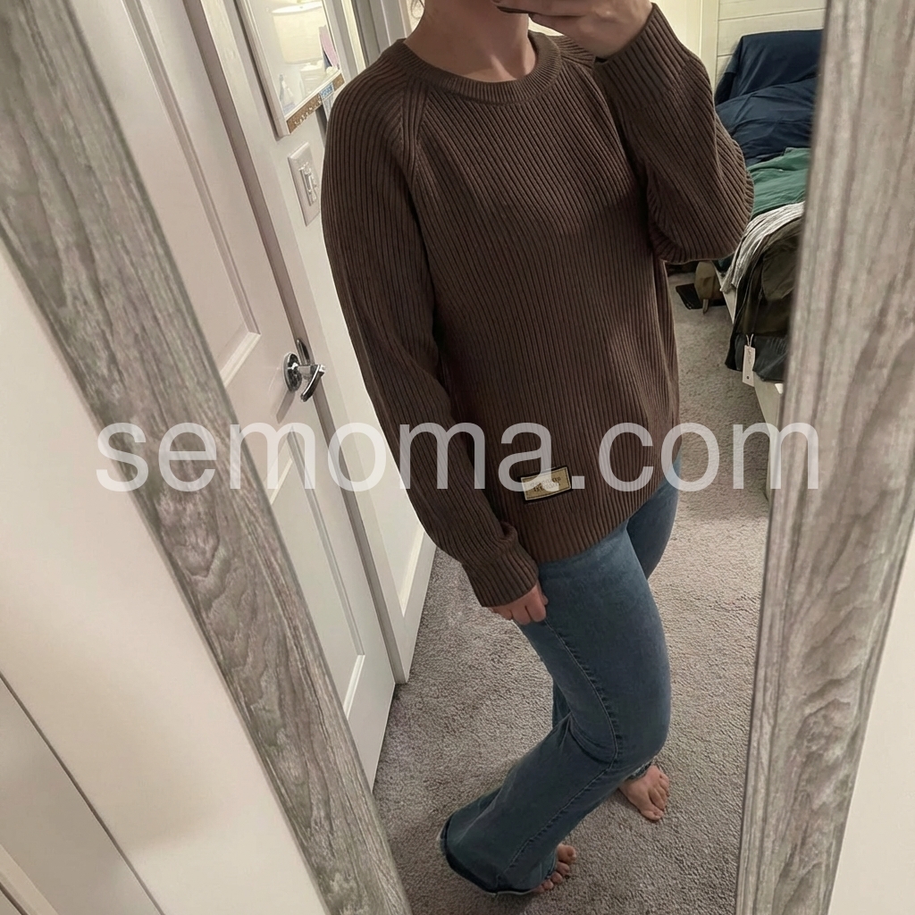 This Coffee Plain Round Neck Sweater is perfect for chilly days. Made with high-quality material, it offers both warmth and style. Its classic round neck design is versatile and can be dressed up or down. Stay cozy and fashionable with this sweater.